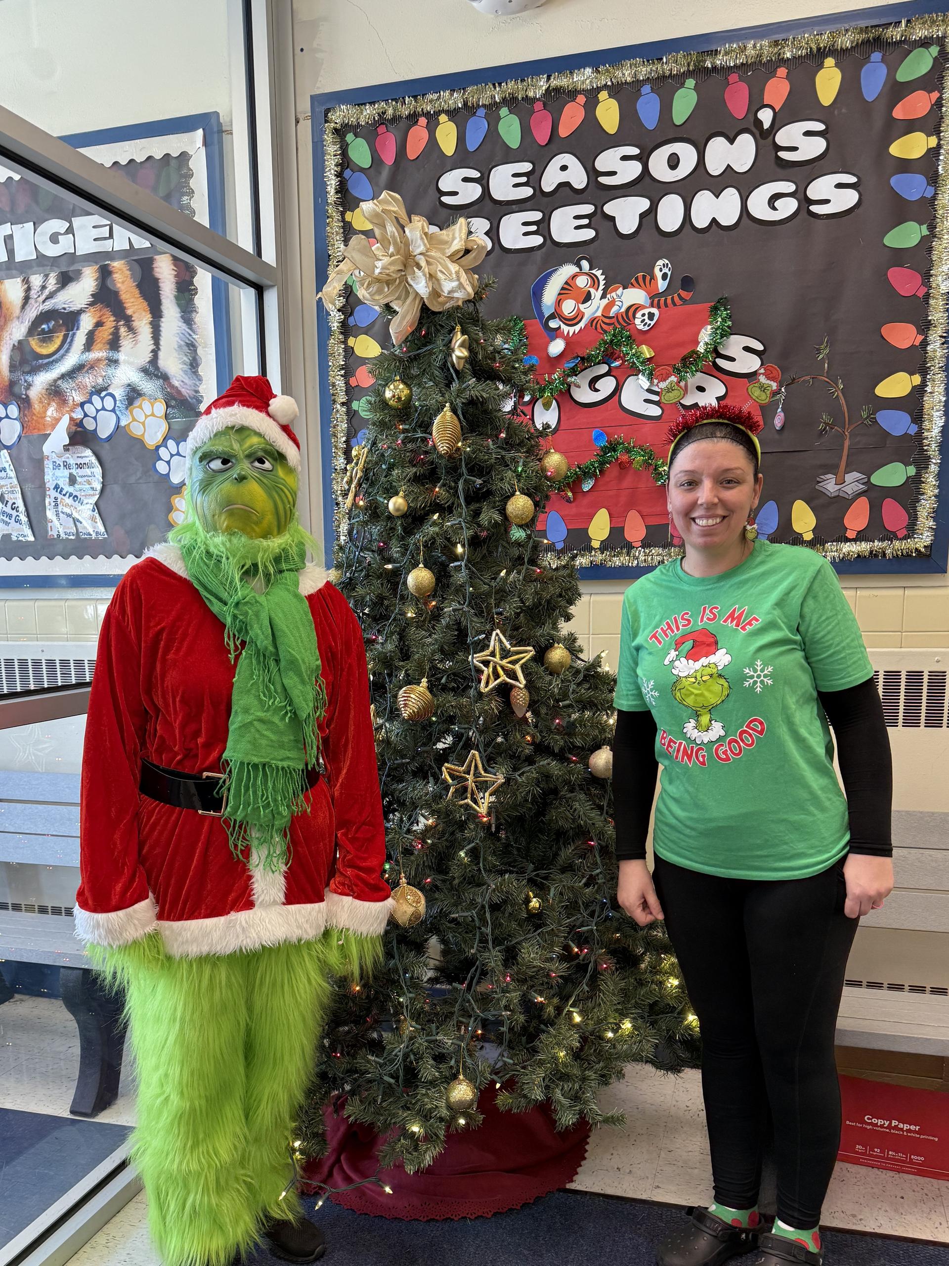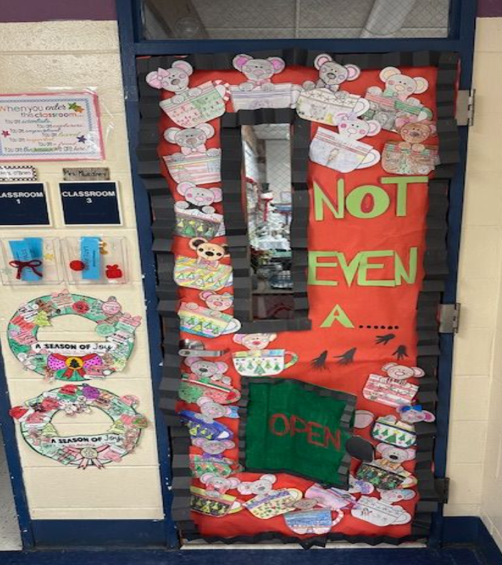 Margaret L. Vetter School's annual winter "Deck the Halls" Door Decorating Contest was held in December and once the doors were ready, photos of all of the entries were shared with staff and families so everyone could vote for their favorites. Even The Grinch himself stopped by to check out the festive doors! |